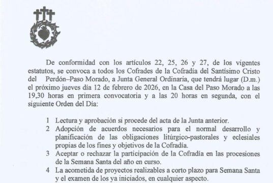 Junta general ordinaria del paso Morado el jueves 13 de febrero desde las...